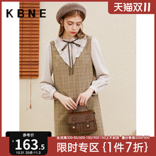 假两件连衣裙女别致独特的收腰裙子kbne2022秋装新款格子衬衫裙¥339