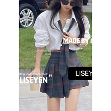 LISEYEN2022年秋冬新款女设计感小众宽肩窄腰衬衫格子裙套装长袖¥358