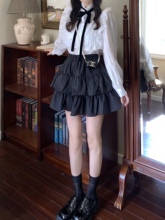 SweetKiki 原创|暗黑公主 纯欲性感辣妹收腰衬衫半身裙三件套套装¥215.98