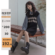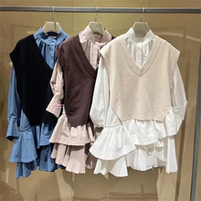 曾小咸内搭衬衫连衣裙中裙女长袖秋冬两件套毛衣马甲背心外穿套装¥269.9