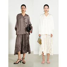 MRS Studios 早秋日本進口重磅三醋酸V领衬衫+压皱不规则半裙套装¥799