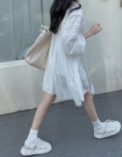 水冰冰】衬衫裙女新款2022年洋气时尚裙子灯笼袖白色连衣裙坠感裙¥129