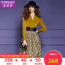 菲梦伊印花连衣裙女长袖秋冬新款高级时尚收腰通勤假两件衬衫裙子¥358