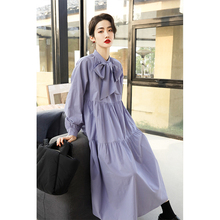 APOZi紫色蝴蝶结衬衫连衣裙女宽松新款秋冬内搭打底配大衣裙子¥229