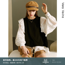 MIUCO复古木耳花边立领蝴蝶领结衬衫+V领背心裙两件套2022秋冬季¥308