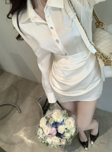 UDRESSY 自制22秋季光泽感白色收腰衬衫连衣裙¥279