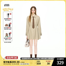 MIUCO金色质感单排扣束腰带收腰修身长款牛仔衬衫连衣裙2022秋季¥308