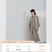 CHACHASTU 法式压褶撞色领衬衫裙女秋装长袖连衣裙女灰色咖色裙子¥188