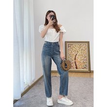 2022年秋冬季浅蓝色抗皱高腰直筒牛仔裤水洗阔腿裤显瘦大长腿长裤¥399