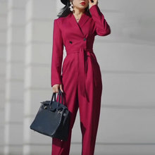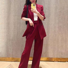 2022年秋冬酒红色双排扣时尚套装显瘦廓形西装上衣高腰直筒阔腿裤¥1080