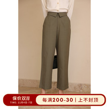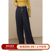 HeyDress苎麻阔腿裤女秋冬高腰排扣设计直筒休闲裤宽松垂感裤子¥380