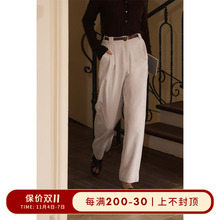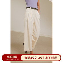 德州巴黎 直筒裤女新款宽松法式斜纹宽松休闲高级白色阔腿休闲裤¥217.55