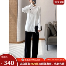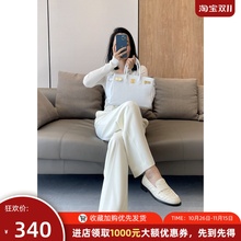时尚明星同款2022年春秋新款高端设计感白色小外套两件阔腿裤套装¥338