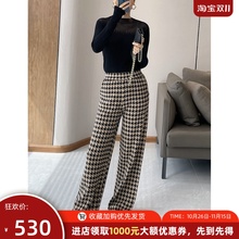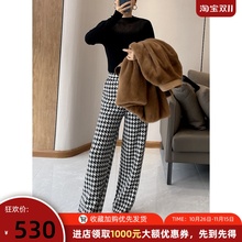 C0623 大长腿 厚实羊绒 千鸟格直筒长裤¥550