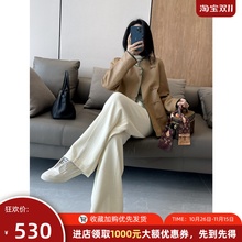 2022年秋冬咖色高腰阔腿加厚羊毛时尚休闲裤通勤显瘦洋气百搭长裤¥599