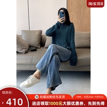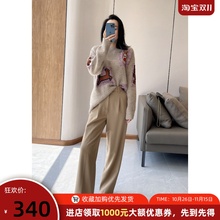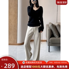 欧洲站2022南油秋季款PAIJIA心动少女感V领上衣+阔腿裤羊绒套装女¥570