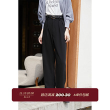德州巴黎 裤子春季垂顺直筒西裤高级感显腿长显瘦黑色高腰休闲裤¥197.1