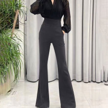 2022年秋季黑色显瘦高腰微喇叭时尚通勤长裤纯色大长腿裤子百搭厚¥469