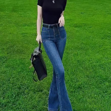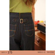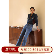 HeyDress复古微喇牛仔裤女秋冬双腰头设计感高腰修身弹力阔腿裤子¥325