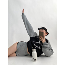 HONORE古月原创 盛夏巴黎系列 高腰显瘦撞色休闲裤女宽松阔腿短裤¥198