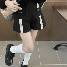 DOLL原创【巴黎幻想】黑色毛呢花边短裤女2022新款高腰阔腿热裤¥98