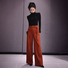 2022年秋冬高腰红色大长腿阔腿裤纯色大气时尚洋气长裤¥459