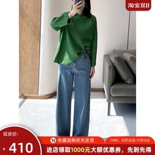 2022年秋冬深绿色直筒高腰洗水牛仔裤修身显瘦大长腿弹力抗皱长裤¥499
