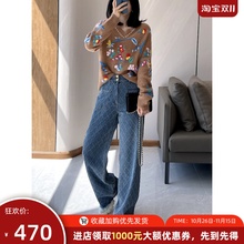 欧货潮牌巴黎2022年新款秋季装高腰裤子女阔腿宽松直筒牛仔裤春秋¥228