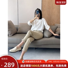 2022年秋季高腰直筒阔腿白色长裤显瘦时尚气质女士休闲裤¥499