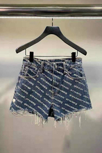 aw大王家牛仔短裤印花字母蓝色高腰翻边阔腿裤百搭休闲女裤潮显瘦¥256