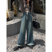 DR"反转巴黎"秋季复古显瘦高腰抽绳系带阔腿牛仔裤宽松¥179