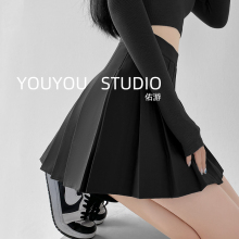 邱肉瑶 新款纯色黑色百褶短裙收腰甜辣风显瘦高级感a字半身裙女¥139