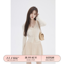 画解WAHJUIS 霍莉顿商学院 呢子西装连衣裙女冬显瘦长袖百褶短裙¥239