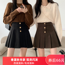 咖色高腰百褶裙a字半裙毛呢半身裙女2022新款秋冬季jk短裙秋冬款¥179