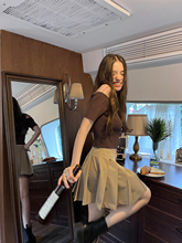 果果家 半身裙女咖色a字裙2022夏季包臀裙学院风短裙高腰jk百褶裙¥89.9