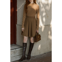 邱肉瑶 秋冬新款纯色高腰百褶短裙A字纽扣设计感小众针织半身裙女¥149
