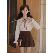 玲玖2022新款秋装女百褶短裙高腰复古学院风a字咖色灯芯绒半身裙¥89