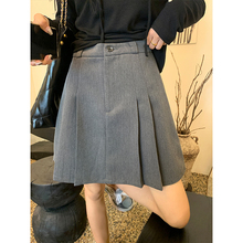 2022早秋新款灰色高腰百褶裙女夏复古显瘦小个子a字西装短裙女J¥116.9