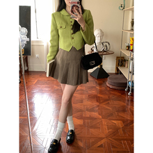 卡其色西装百褶裙女秋冬毛呢半身裙2022新款高腰jk短裙学生a字裙¥31.5