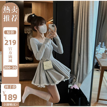 IN MIMIFACE 灰色连衣裙女秋季新款长袖收腰气质辣妹百褶A字短裙¥219