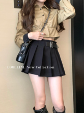 SRK 马蹄扣百褶黑色半身裙女秋季新款小个子高腰a字显瘦百搭短裙¥138