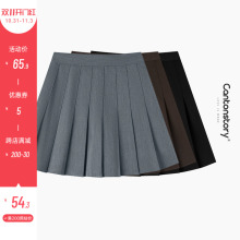 曾小咸女装灰色高腰百褶裙女秋冬学院风小设计百搭a字半身裙短裙¥89.9
