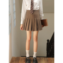 A7seven秋季灰色西装百褶短裙半身裙女a字高腰显瘦学院风咖色裙子¥95