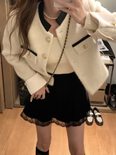 邱肉瑶 2022年新款通勤黑色蕾丝边高腰小个子A字短裙百褶半身裙女¥129.99