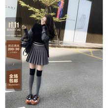 GRACECHOW-22FW周扬青 辣妹风灰色半身裙女秋高腰显瘦a字百褶短裙¥279.1