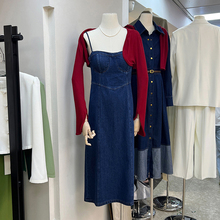 连衣裙女秋2022新款韩式chic抹胸修身显瘦牛仔吊带裙子开叉包臀裙¥119