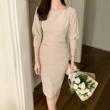收腰连衣裙女秋季泡泡袖法式修身显瘦包臀裙一字肩通勤裙子西装裙¥158