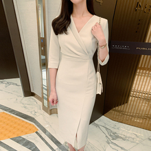 西装连衣裙女秋季包臀裙子V领修身开叉气质收腰显瘦职业通勤裙子¥158