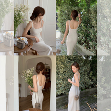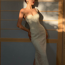ACHI大也池白色吊带修身连衣裙弹力长款开叉一步裙子收腰包臀长裙¥259.99