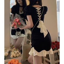 周小熊新国风黑色连衣裙女夏季2022年新款辣妹修身包臀开叉短裙子¥129